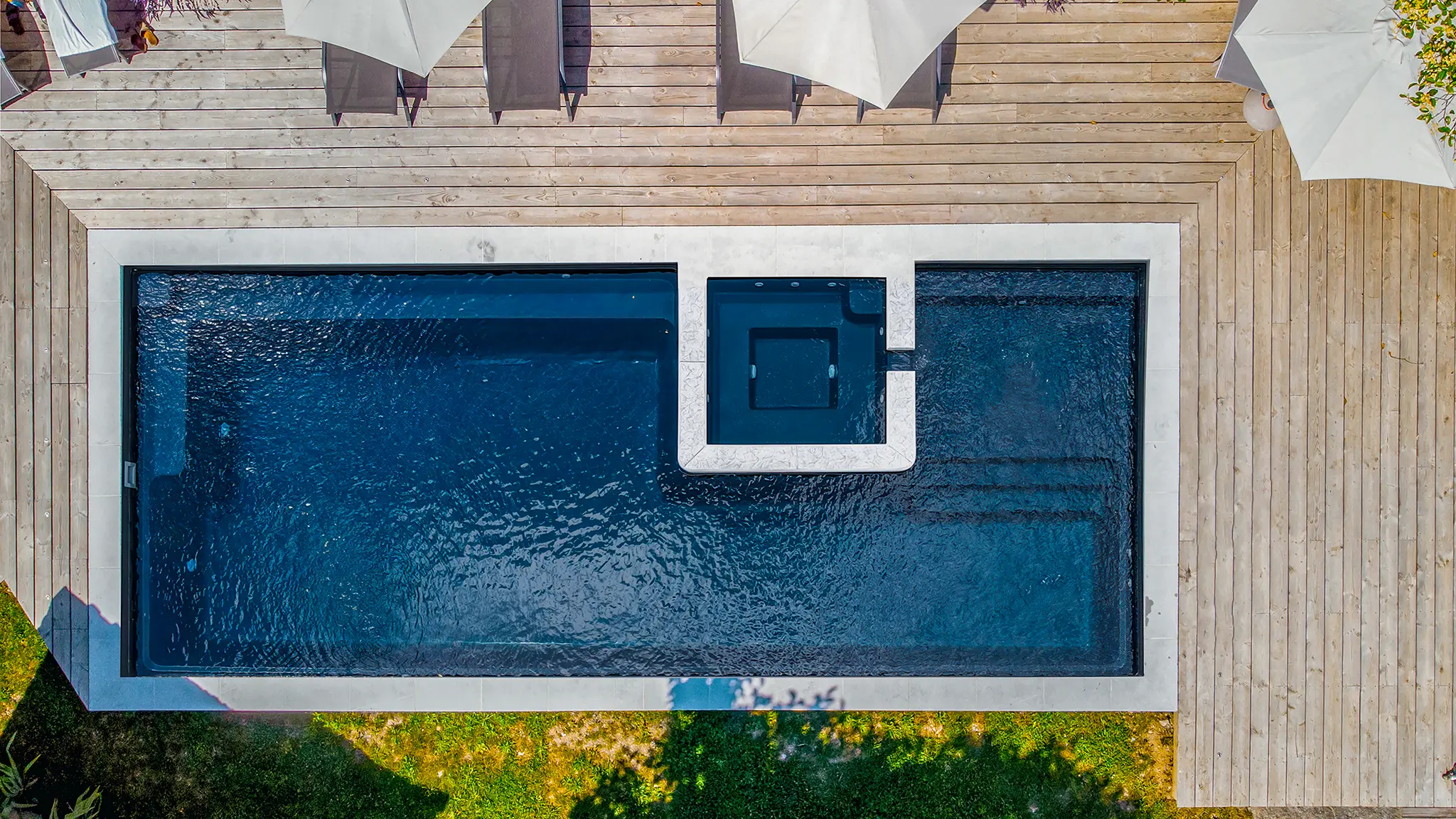 Our team utilizes fiberglass pools by Evo Pools, which boasts award-winning pool designs to complement your new home. Choose a style for your inground backyard fiberglass swimming pool that ensures it is dressed for the occasion and explore our portfolio of exciting features. No matter how you wish to accessorize your pool – with a spa, splash deck, swim out ledge or more – we have something for everyone’s preference.