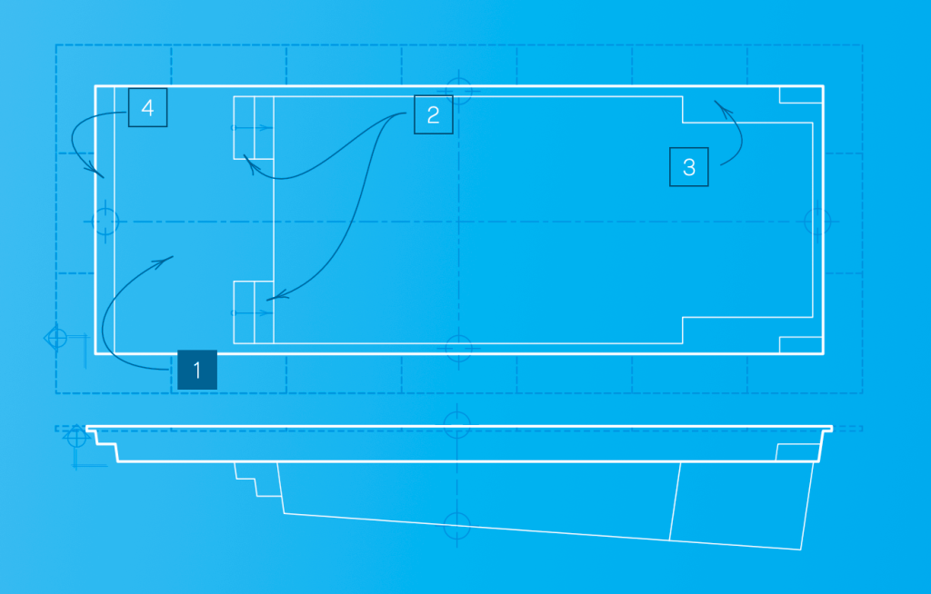 A subtle floor transition creates distinct zones for play, rest and full-length swimming—ideal for every type of pool day.
