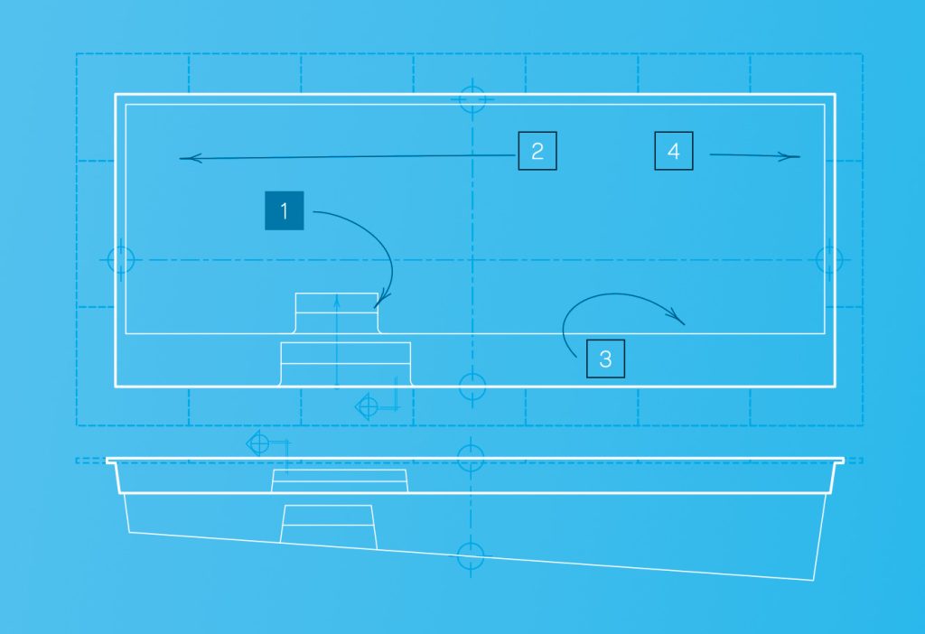 Entry and exit steps are placed to preserve the clean lines of the design while enhancing ease of use.